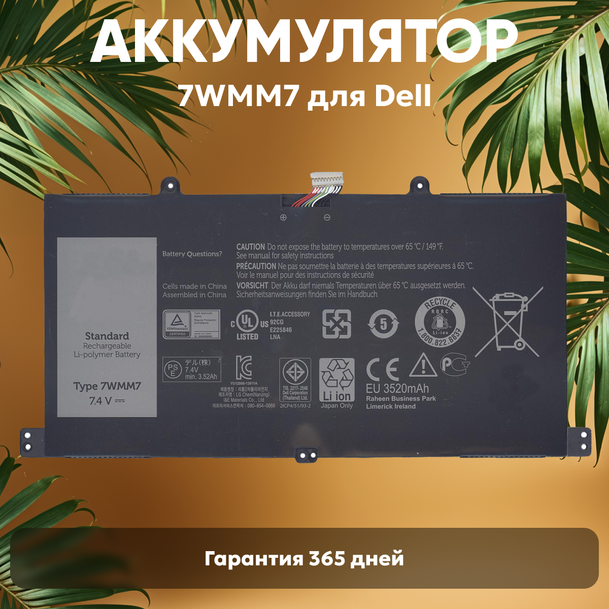 Аккумуляторная батарея 7WMM7 для планшета Dock station Dell Venue 11 Pro, 7.4В, 28Вт, 3520мАч, Li-ion, черный: сравнение цен, характеристики, фото, актуальное наличие и цены.