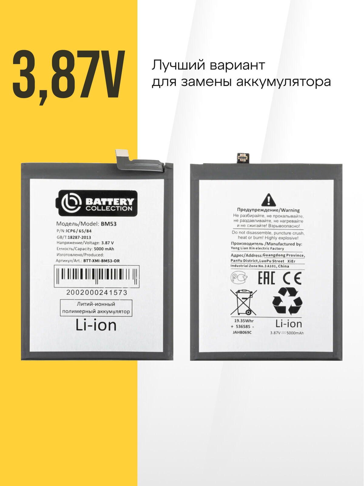 Аккумуляторная батарея для Xiaomi BM53 (Mi 10T/10T Pro) от Battery Collection обеспечивает стабильную работу вашего устройства, что позволяет вам наслаждаться использованием телефона без перерывов и неожиданных отключений.