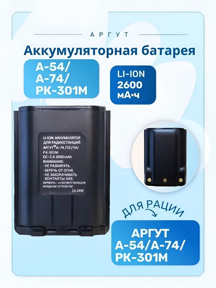 Купить Аккумуляторная батарея Аргут А-54/А-74/РК-301М Li-ion 2600 мАч_RU52032 с доставкой по всей России. Аккумуляторная батарея Аргут А-54/А-74/РК-301М Li-ion 2600 мАч_RU52032: сравнение цен, характеристики, фото, актуальное наличие и цены.