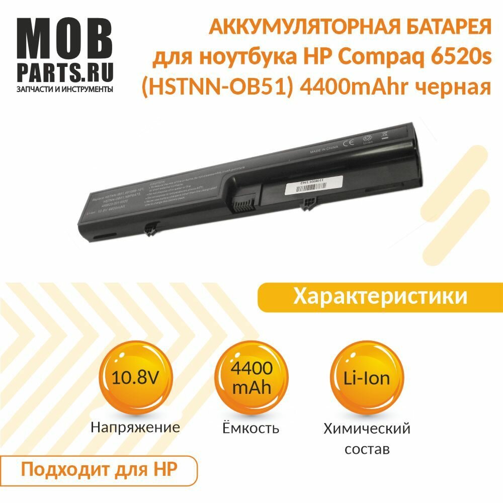 Купить Аккумуляторная батарея для ноутбука HP Compaq 6520s (HSTNN-OB51) 4400mAhr OEM черная с доставкой по всей России. Аккумуляторная батарея для ноутбука HP Compaq 6520s (HSTNN-OB51) 4400mAhr OEM черная: сравнение цен, характеристики, фото, актуальное наличие и цены.