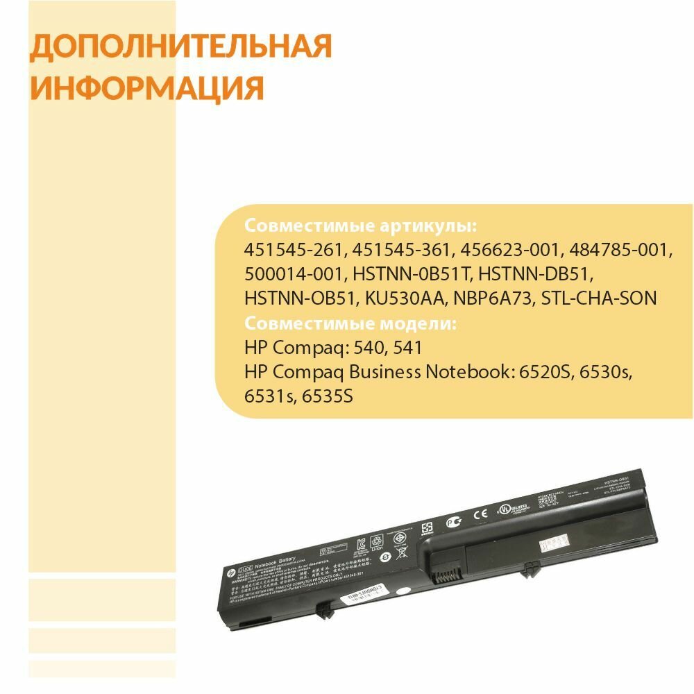 Купить Аккумуляторная батарея для ноутбука HP Compaq 6520s (HSTNN-OB51) 47Wh черная с доставкой по всей России. Аккумуляторная батарея для ноутбука HP Compaq 6520s (HSTNN-OB51) 47Wh черная: сравнение цен, характеристики, фото, актуальное наличие и цены.