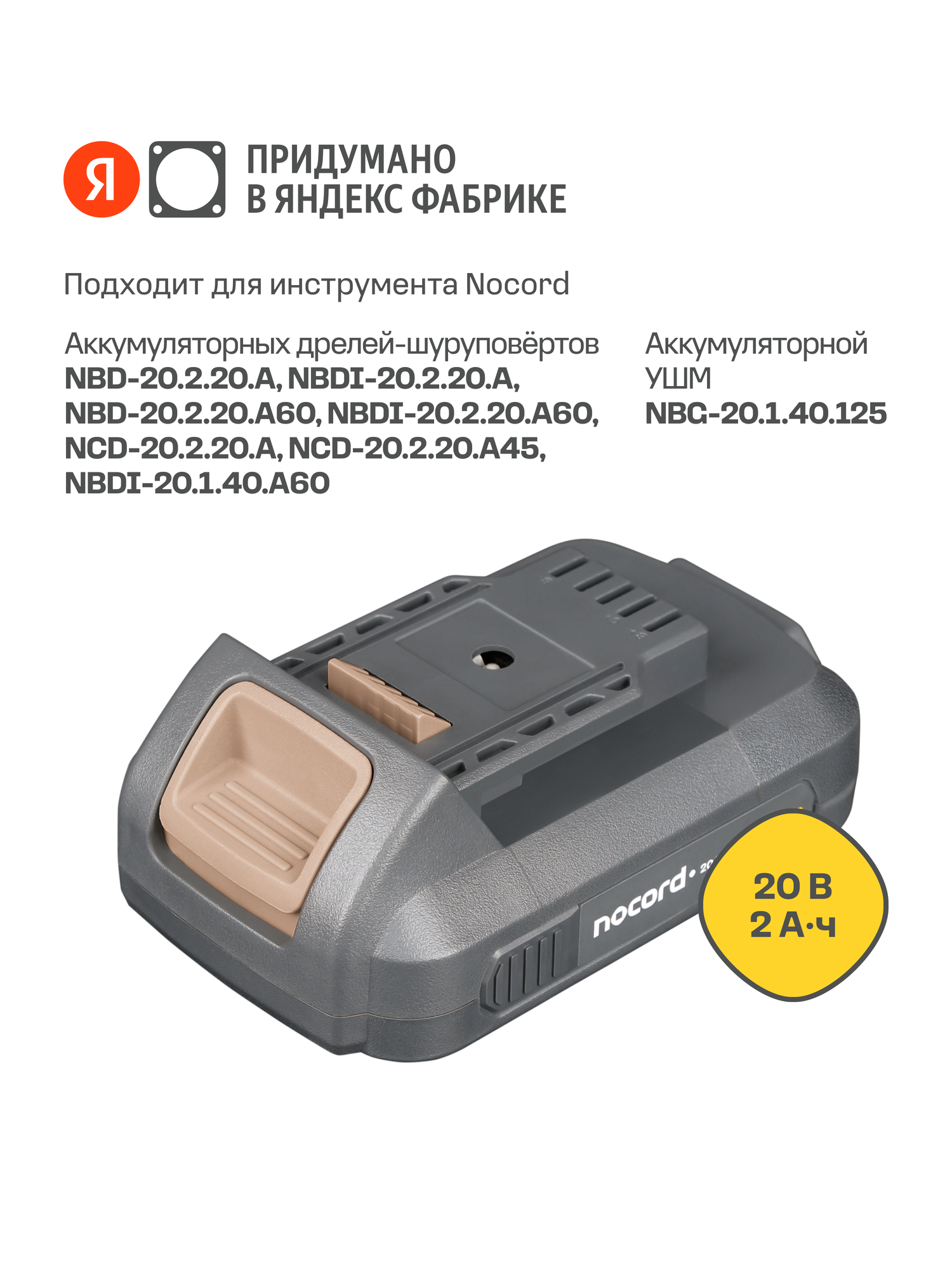 Купить Аккумуляторная батарея Nocord NB-20.2.0. A, Li-ion, 20 В, 2 А·ч с доставкой по всей России. Аккумуляторная батарея Nocord NB-20.2.0. A, Li-ion, 20 В, 2 А·ч: сравнение цен, характеристики, фото, актуальное наличие и цены.