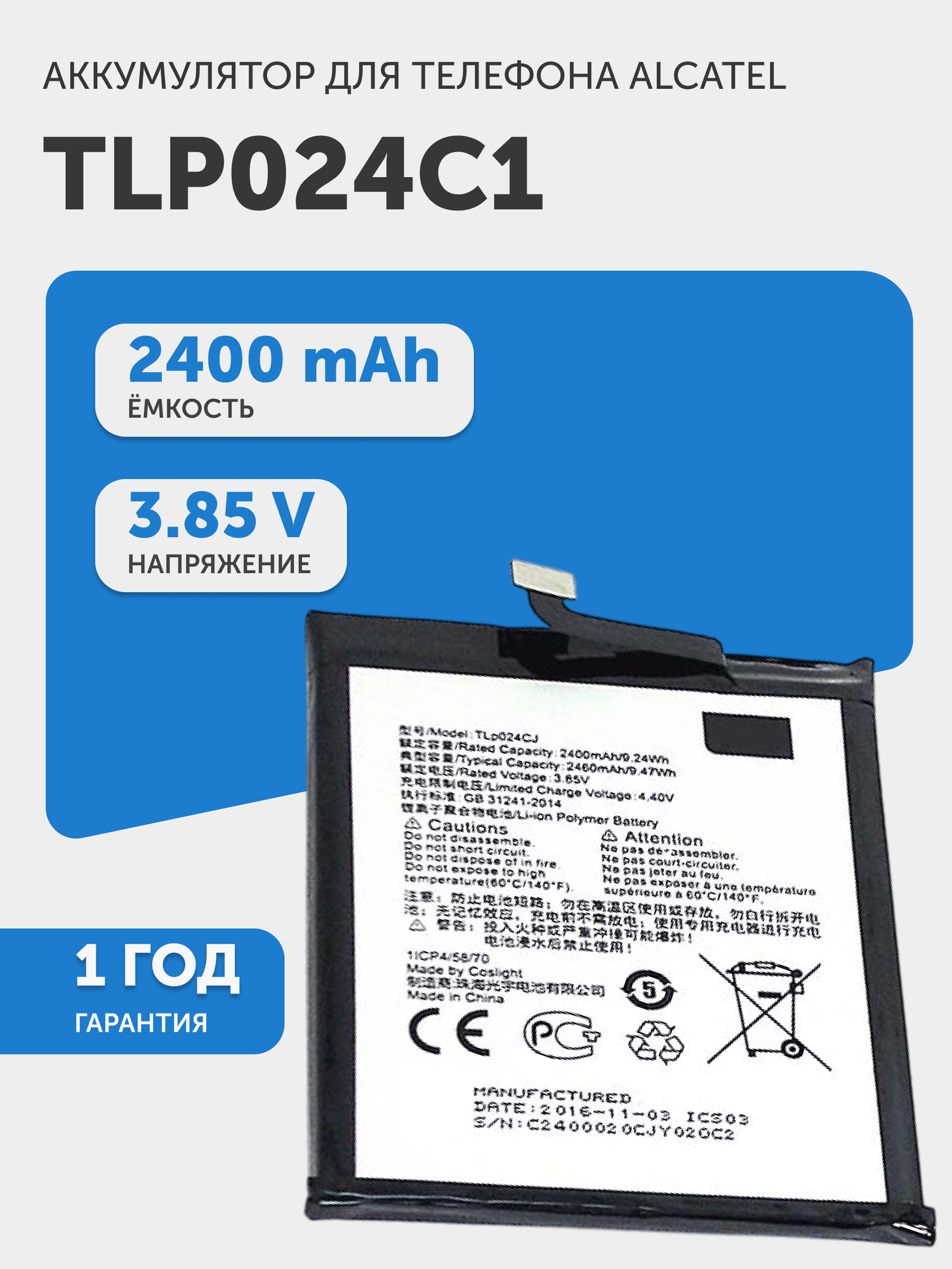 Аккумуляторная батарея TLP024C1 для телефона Alcatel A3 (5046D), Shine Lite (5080X): сравнение цен, характеристики, фото, актуальное наличие и цены.