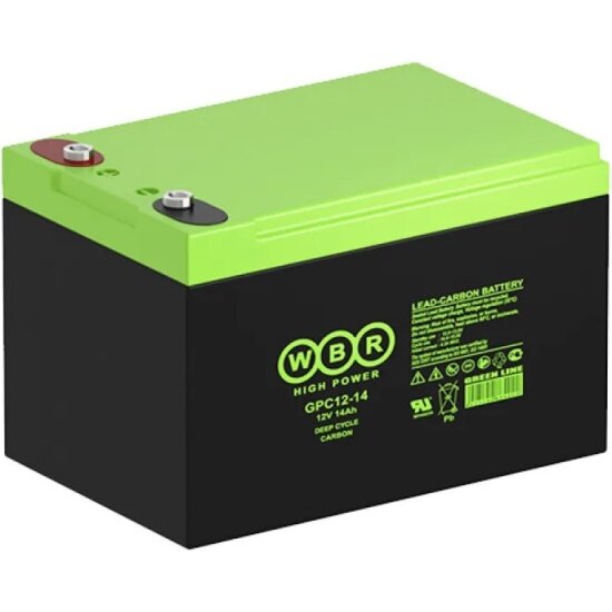 GPC12-14 - герметизированные карбоновые свинцово-кислотные аккумуляторные батареи со сроком службы 15 лет или более 1900 расчетных циклов заряда-разряда в циклическом режиме при 70% разряде. Эти высокоэффективные перезаряжаемые батареи не требуют обслуживания в течение всего срока службы и за счет использования чистого свинца, а также добавки углерода в состав электродов получили улучшенные зарядные и разрядные характеристики.