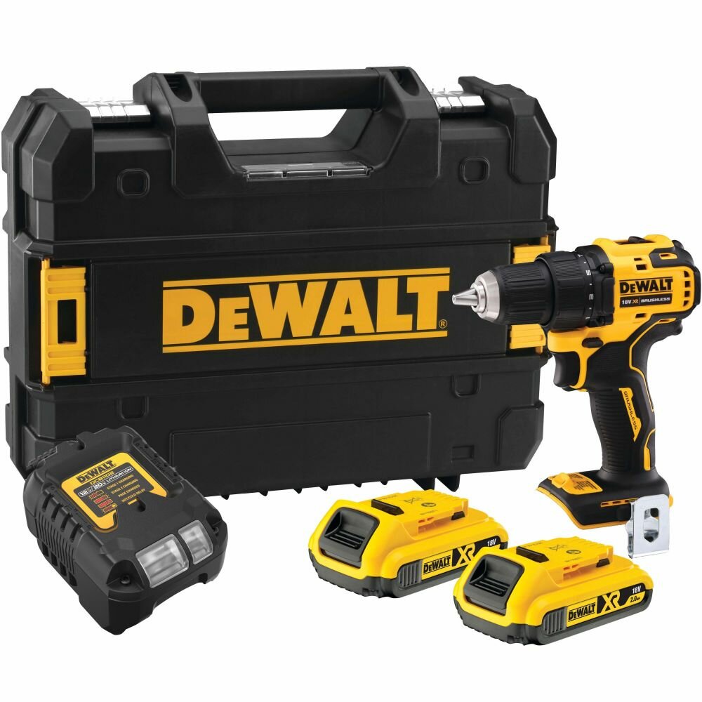 Аккумуляторная бесщеточная дрель-шуруповерт DeWALT, 18 В, 1650 об/мин, с 2 АКБ 2 Ач и ЗУ, в кейсе TSTAK, DCD708D2T: сравнение цен, характеристики, фото, актуальное наличие и цены.
