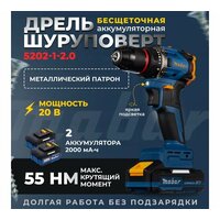 Аккумуляторная бесщеточная дрель-шуруповерт MABAR 55Нм, 20В 5502-1-2.0