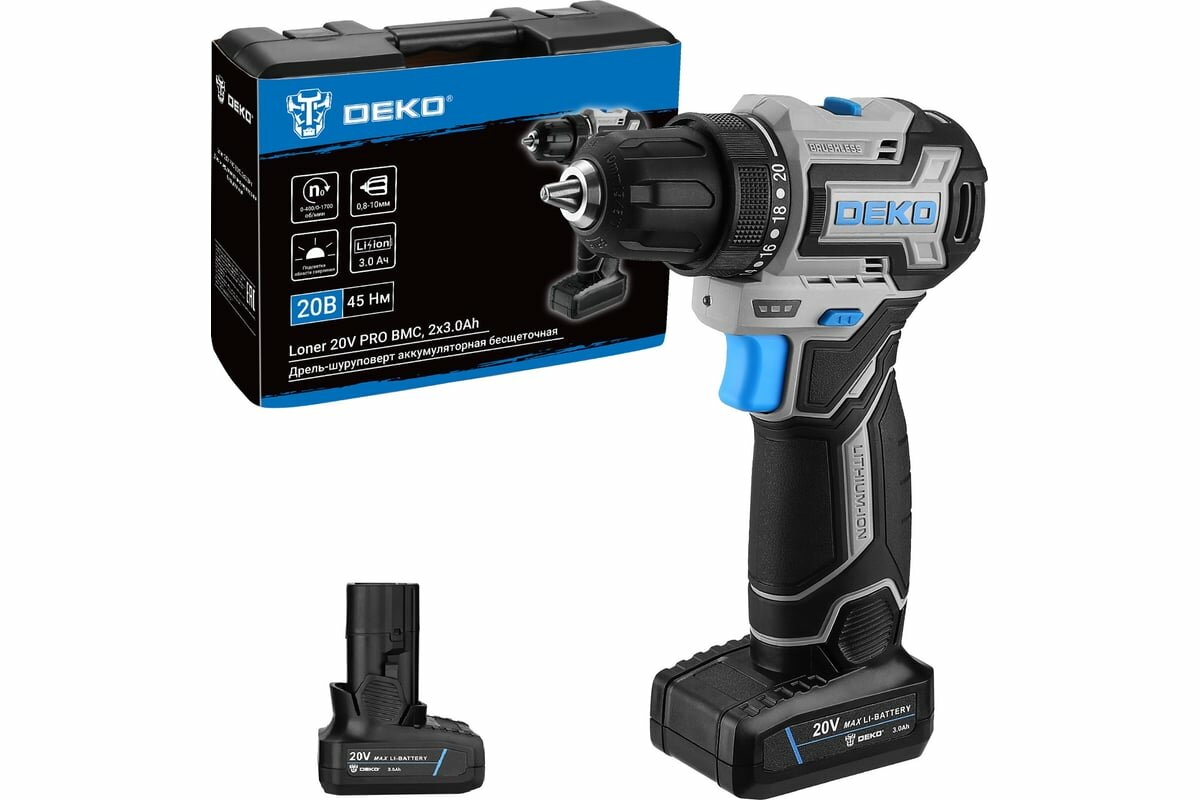 Купить Аккумуляторная бесщеточная компактная дрель-шуруповерт DEKO Loner 20V PRO в кейсе, 20 В, 2×3.0 Ач 085-1010 с доставкой по всей России. Аккумуляторная бесщеточная компактная дрель-шуруповерт DEKO Loner 20V PRO в кейсе, 20 В, 2×3.0 Ач 085-1010: сравнение цен, характеристики, фото, актуальное наличие и цены.