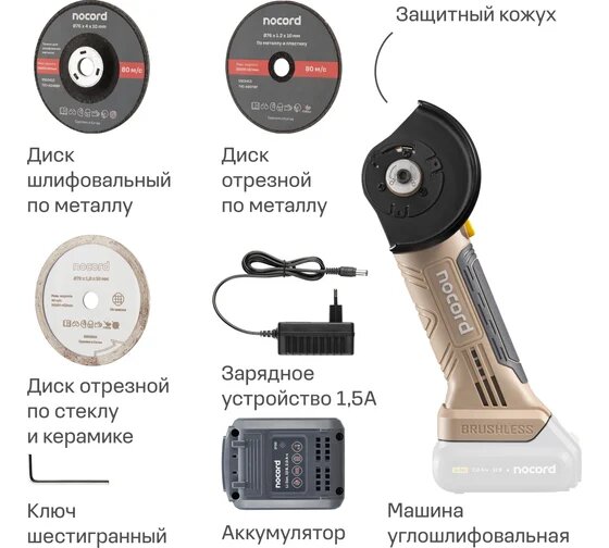 Аккумуляторная бесщеточная отрезная машина Nocord 12В, 1×2 А·ч Li-Ion, в кейсе 901068. NBG-12.1.20.76-2: сравнение цен, характеристики, фото, актуальное наличие и цены.