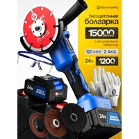 Характеристики шлифмашины: Напряжение: 24 В. Ёмкость: 6 Ah. Число оборотов: 12 000 об/мин. Размер диска: 125 мм. Количество скоростей: 3.