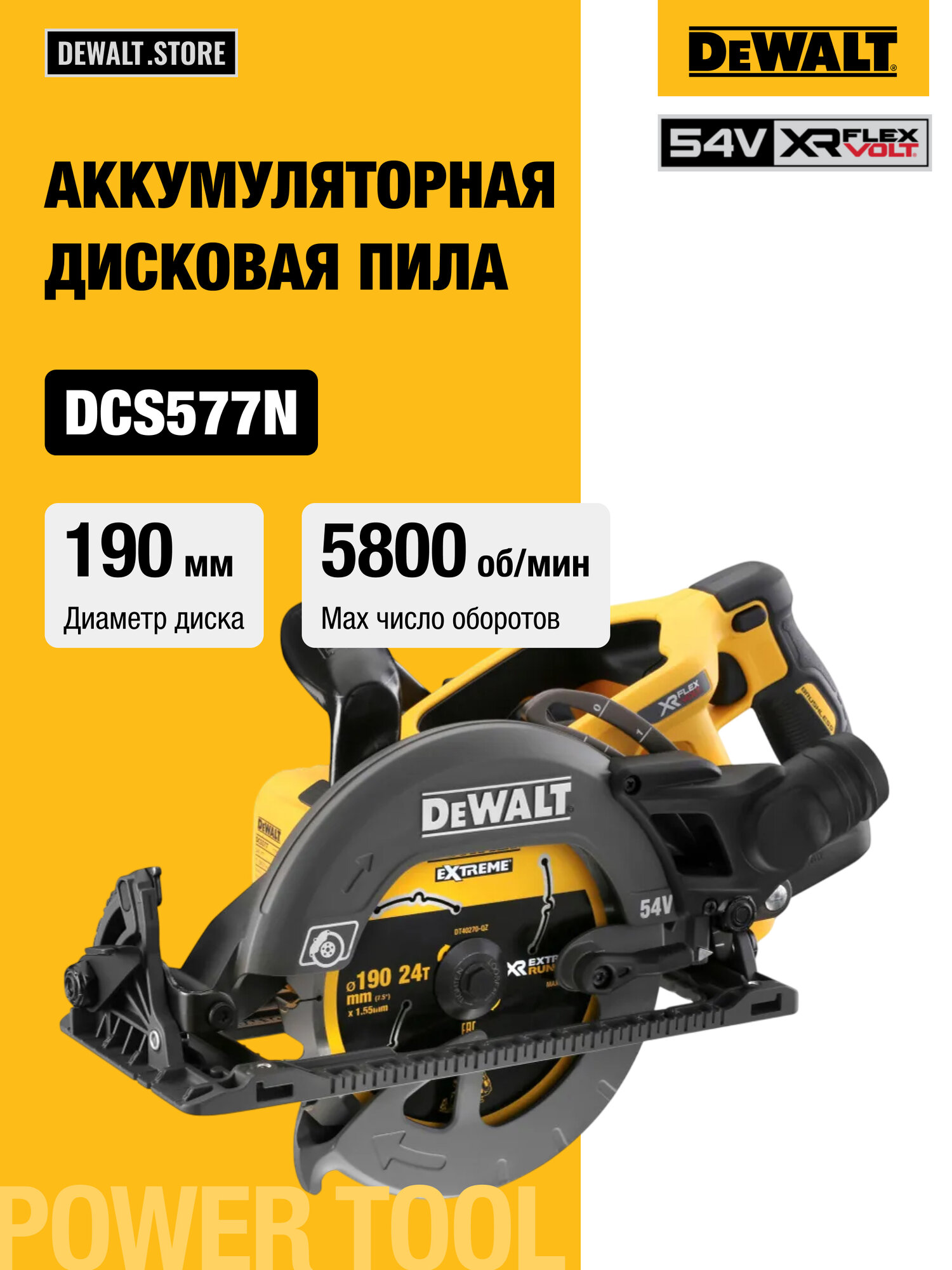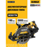 Аккумуляторная дисковая пила, DEWALT, 54 В, 190 мм, 5800 об/мин, без АКБ и ЗУ, DCS577N: сравнение цен, характеристики, фото, актуальное наличие и цены.