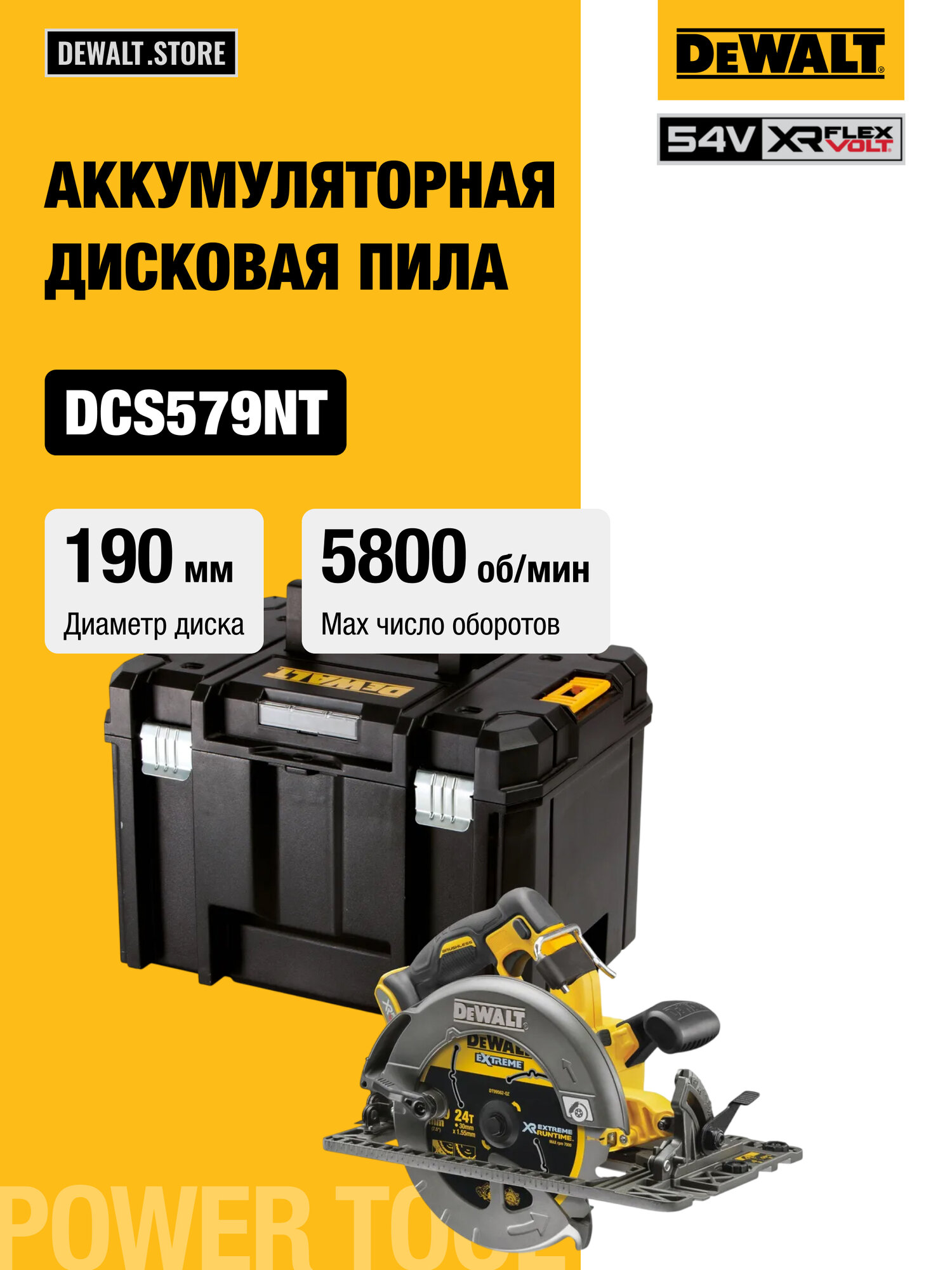 Аккумуляторная дисковая пила DEWALT DCS579NT, 54 В, 190 мм, 5800 об/мин, без АКБ и ЗУ, в кейсе TSTAK: сравнение цен, характеристики, фото, актуальное наличие и цены.