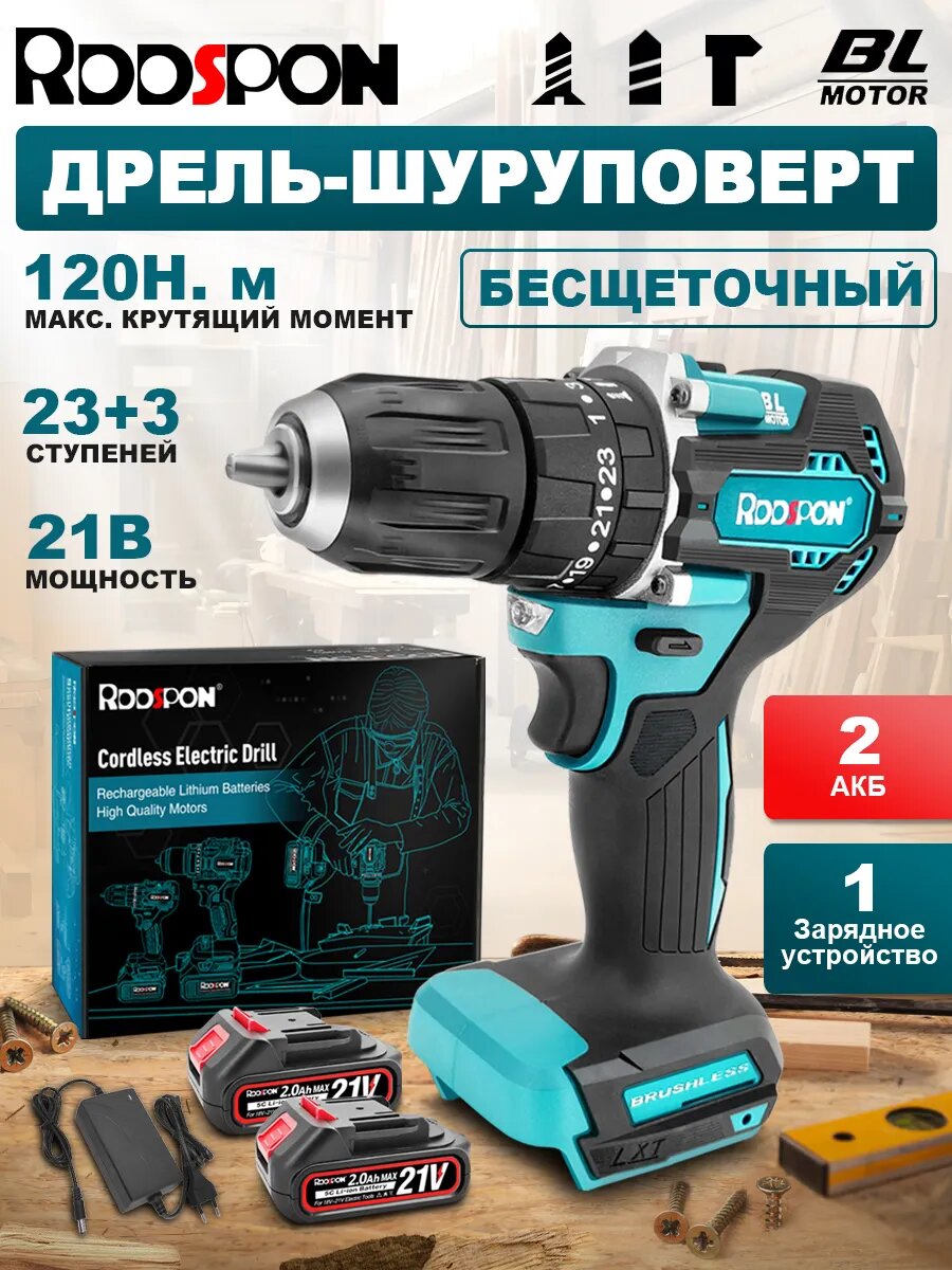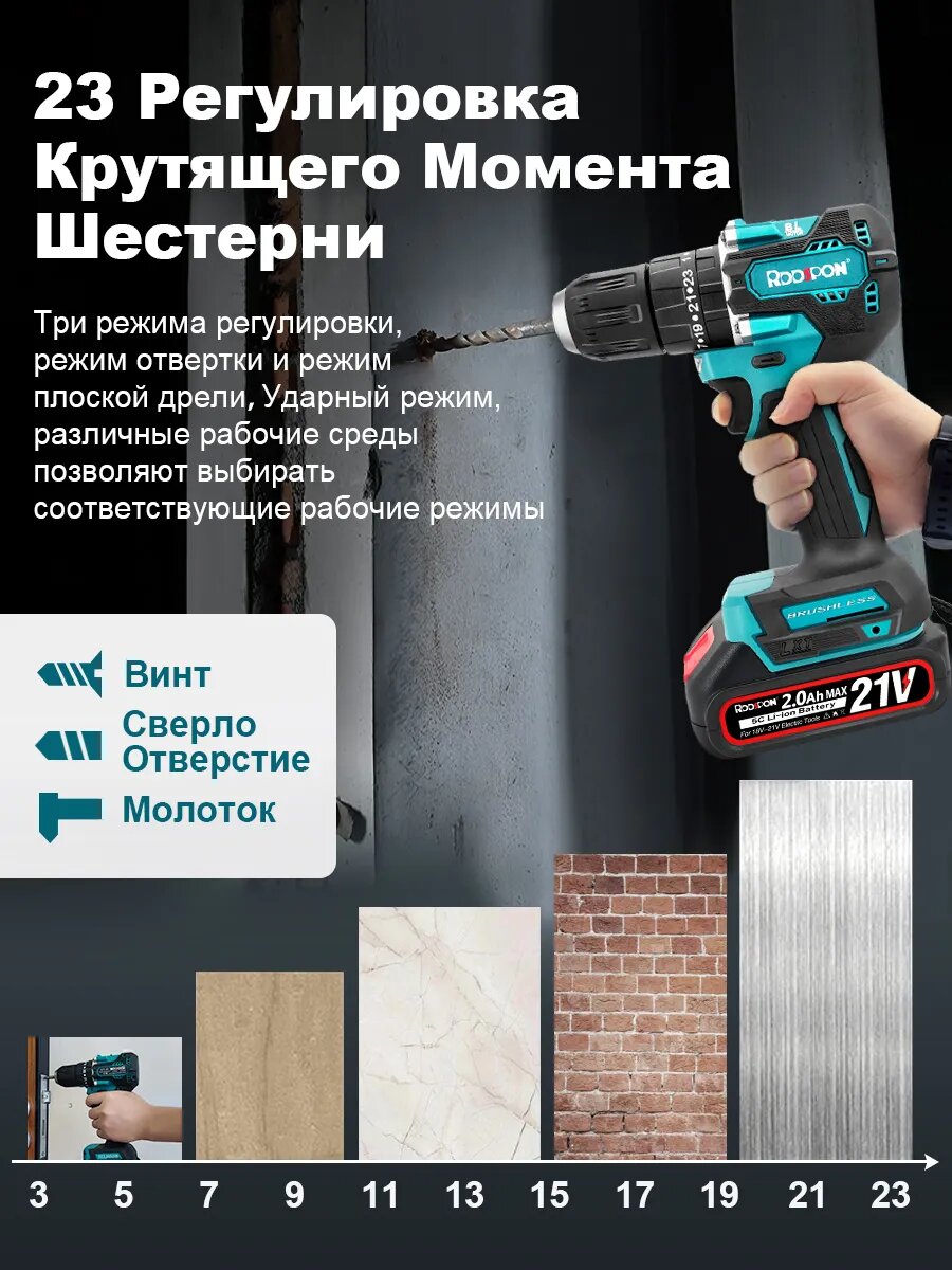 Купить Аккумуляторная дрель Rddspon FH487 18 V, бесщеточный двигатель, Один аккумулятор емкостью 2AH*2, С зарядным устройством с доставкой по всей России.