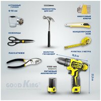 Купить Аккумуляторная дрель-шуруповерт 2 акб 12В. 1.5Ач, 20Нм GOODKING EC-1202104, набор инструментов для ремонта с доставкой по всей России.