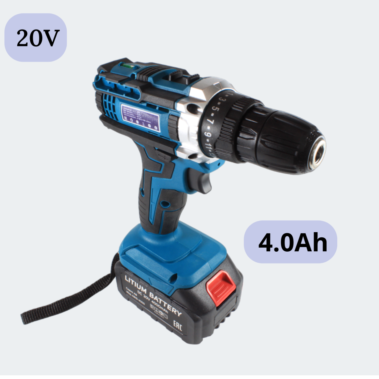 Купить Аккумуляторная дрель-шуруповерт AktiTool CD20G в кейсе c двумя аккумуляторами 4000 mAh с доставкой по всей России.