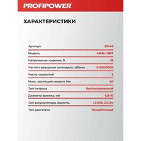 Аккумуляторная дрель-шуруповерт бесщёточный PROFIPOWER MKBL-18BT (18В Li-ion 2 шт 2,0 Ач кейс)