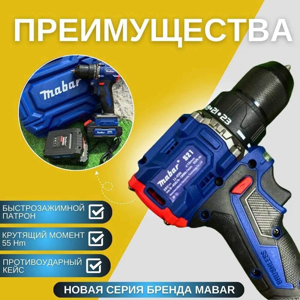 Аккумуляторная дрель шуруповерт безщеточная Mabar S21 20V, 2 АКБ, 2.0 Ah, 55 Нм с кейсом: сравнение цен, характеристики, фото, актуальное наличие и цены.