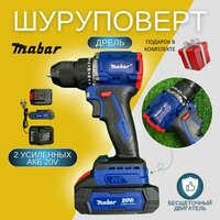 Купить Аккумуляторная дрель шуруповерт безщеточная Mabar S21 20V, 2 АКБ, 2.0 Ah, 55 Нм с кейсом с доставкой по всей России.