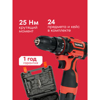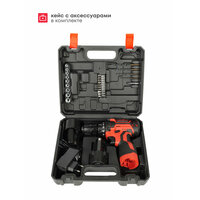 Аккумуляторная дрель-шуруповёрт Boxbot 12 В, CD-1220L-2CA, подходит для сверления и завинчивания крепежей. При максимальном крутящем моменте 25 Н·м инструмент легко справляется со своими задачами: вкручивает саморезы, помогает в сборке мебели и просверливает небольшие отверстия в плотных материалах. Быстрозажимной двухмуфтовый патрон надёжно фиксирует оснастку с хвостовиком от 0,8 до 10 мм — можно быстро менять свёрла и биты без ключа для патрона. Дрель-шуруповёрт работает от Li-Ion аккумулятора ёмкостью 2 А·ч — удобно пользоваться, даже если рядом нет розетки. Индикатор заряда на корпусе помогает следить за уровнем энергии. Инструмент совместим с аккумуляторами Boxbot, а также других известных производителей. В комплект входят 2 аккумулятора, 9 бит с удлинителем, 4 сверла, 9 торцевых головок с переходником и зарядное устройство. Инструмент поставляется в кейсe, удобном для хранения и транспортировки.