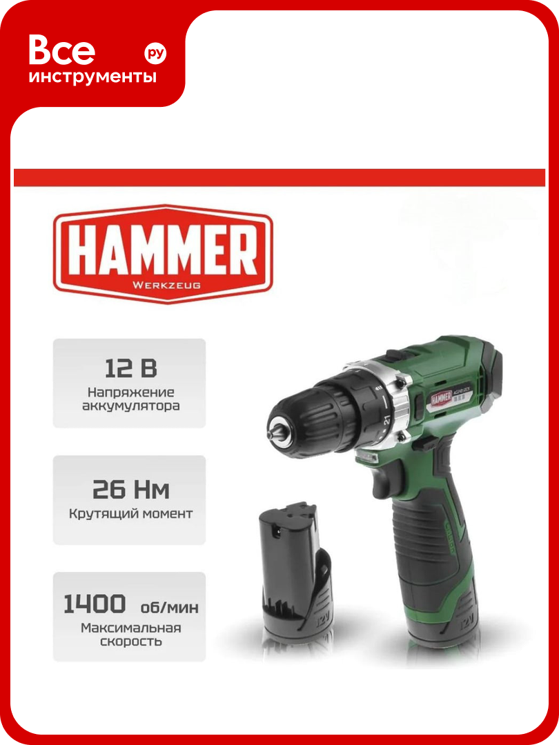 Аккумуляторная дрель-шуруповерт Hammer Flex 12 В, 2×1.5 Ач, Li-ION, 10 мм, 0-350/0-1400 об/мин, 26 Нм, в кейсе ACD12/2CS: сравнение цен, характеристики, фото, актуальное наличие и цены.