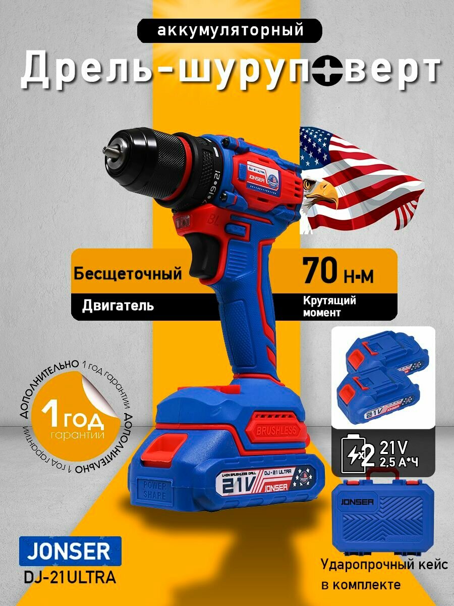 Аккумуляторная дрель-шуруповерт Jonser DJ-21 ULTRA / 21В, емкость Ah 2, зарядная станция, кейс, 2 АКБ, подсветка рабочей зоны / электродрель: сравнение цен, характеристики, фото, актуальное наличие и цены.