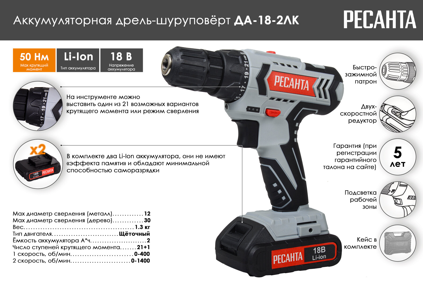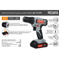 Дрель-шуруповерт аккумуляторная Ресанта ДА-18-2ЛК, 18в, 2 акб, в кейсе: сравнение цен, характеристики, фото, актуальное наличие и цены.