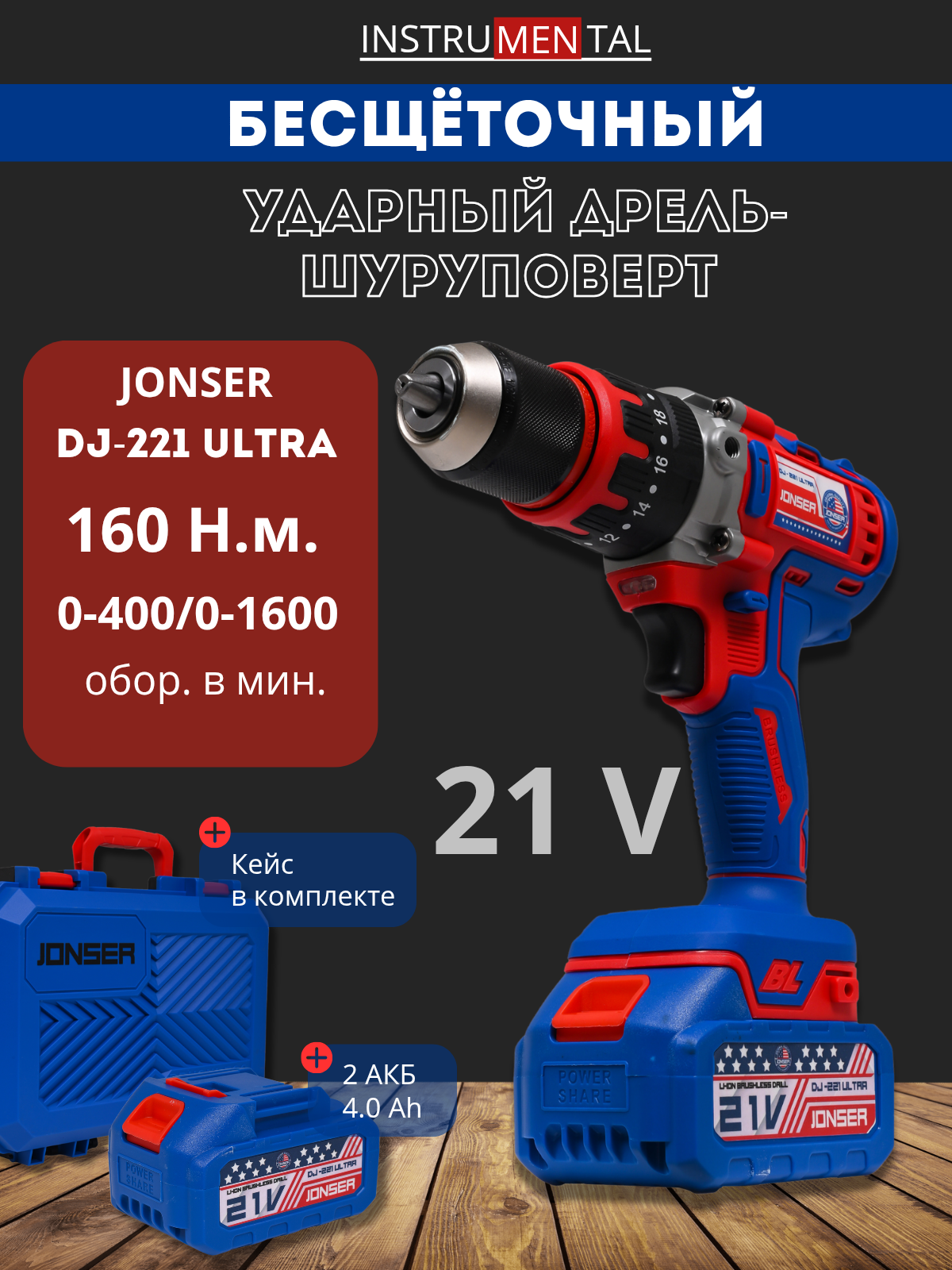 Аккумуляторная дрель-шуруповерт, в кейсе (21.6в, 160 Нм, 2 АКБ по 4 А/ч) JONSER DJ-221 ULTRA: сравнение цен, характеристики, фото, актуальное наличие и цены.