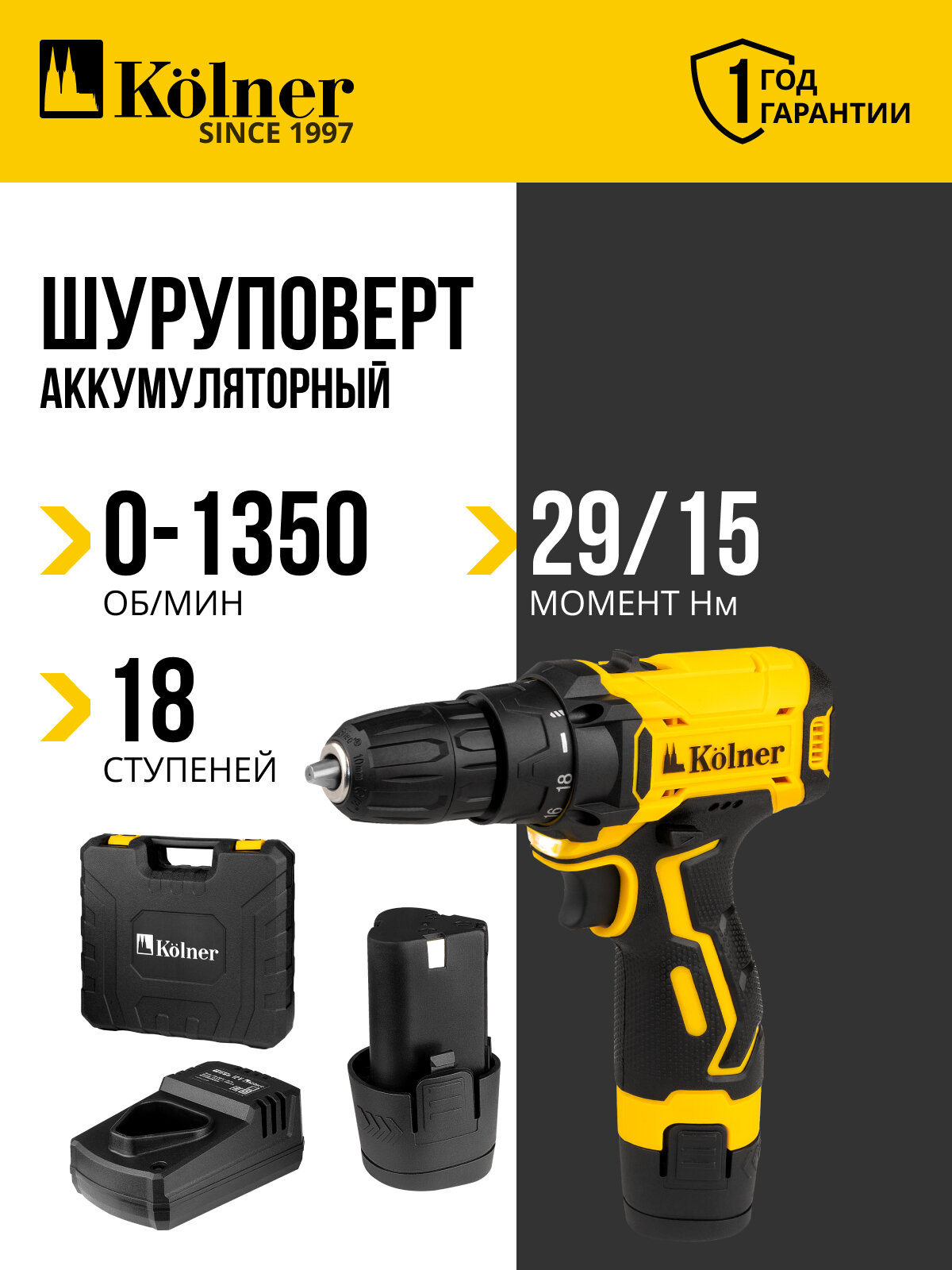 Купить Аккумуляторная дрель-шуруповёрт KOLNER «KCD12/2LC», 2 аккумулятора с доставкой по всей России. Аккумуляторная дрель-шуруповёрт KOLNER «KCD12/2LC», 2 аккумулятора: сравнение цен, характеристики, фото, актуальное наличие и цены.