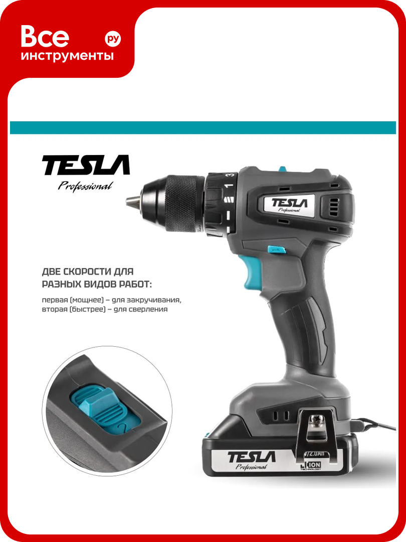 Аккумуляторная дрель Tesla TCD18BL 18В 2×2.0Ач LiION 13мм 0-400/0-1500об/мин 55Нм 1ч кейс 840369: сравнение цен, характеристики, фото, актуальное наличие и цены.