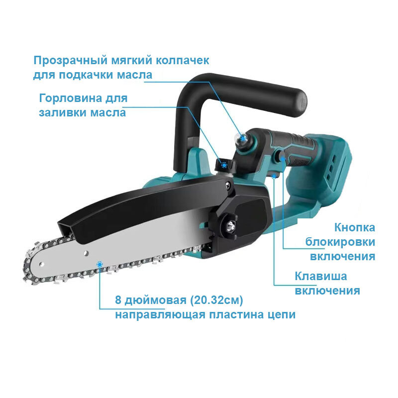 Купить Аккумуляторная электроила 8 дюймов, 1800 Вт с встроенной масленкой и 2-мя мощными аккумуляторами с доставкой по всей России.