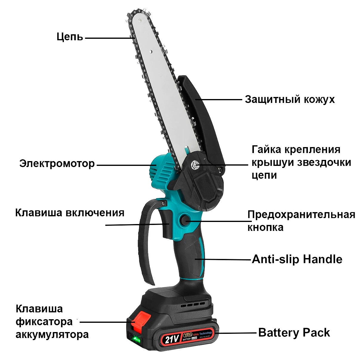 Купить Аккумуляторная электропила VAVe, 6 дюймов, с 2-мя аккумуляторами по 2Ah + цепь в подарок с доставкой по всей России.