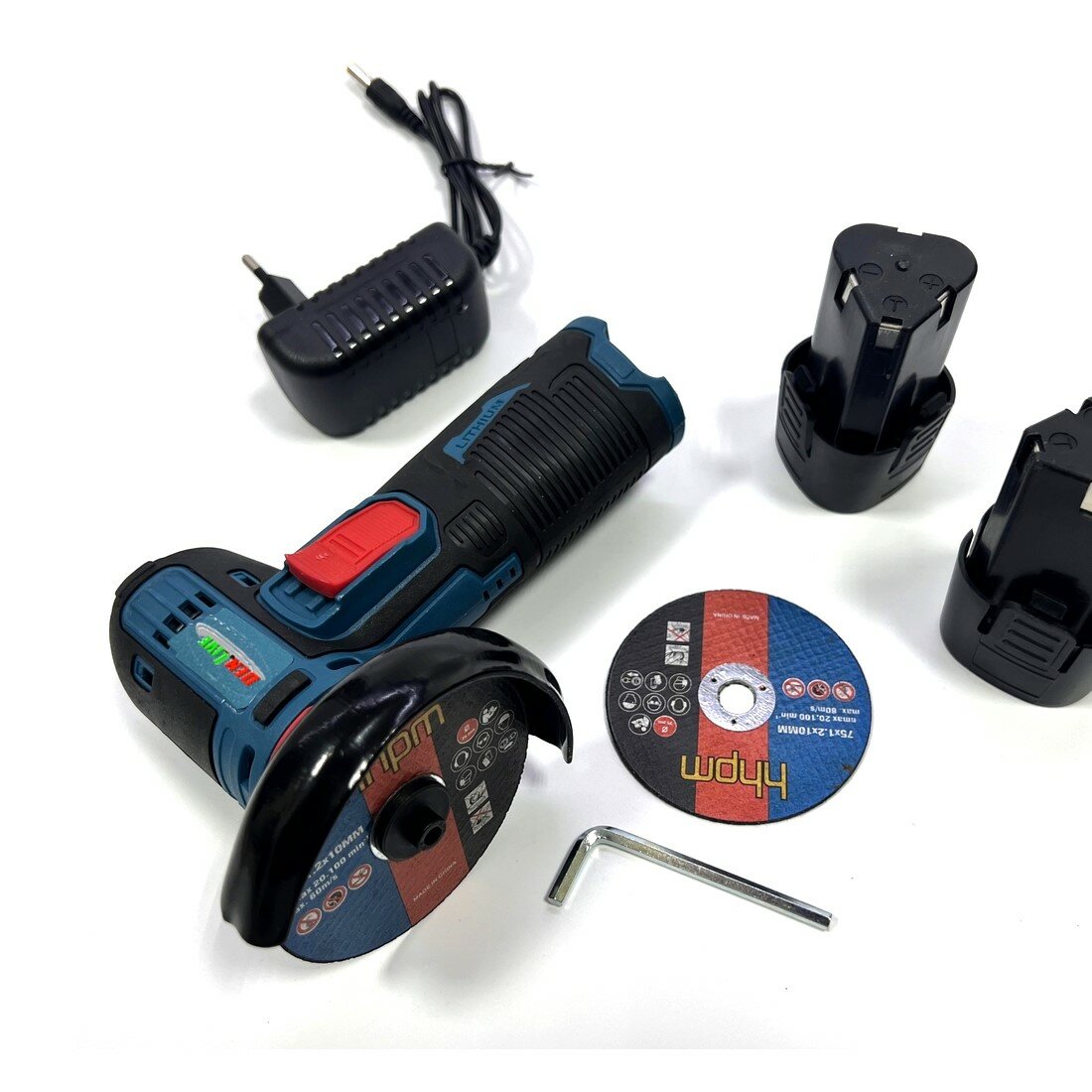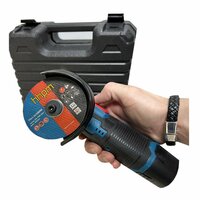 Аккумуляторная мини УШМ(болгарка) - компактную и мощную угловую шлифовальную машину, которая станет вашим надежным помощником в выполнении различных задач. Скорость вращения впечатляющих 22,000 оборотов в минуту позволит вам быстро и эффективно обрабатывать разнообразные материалы. В комплекте с угловой шлифовальной машиной идут 2 аккумулятора, что позволит вам работать без прерывания в течение длительного времени. Аккумуляторы имеют напряжение 12 вольт и обеспечивают стабильную работу машины. Благодаря этому, вы сможете справиться с самыми сложными задачами без каких-либо проблем . Дополнительно в комплекте поставляется пластиковый кейс, который обеспечит безопасное хранение и транспортировку машины и аксессуаров. Внутри кейса вы найдете 2 обрезных диска, которые позволят вам мгновенно приступить к работе. Также в комплекте имеется шестигранник для быстрой замены дисков и зарядное устройство для удобной подзарядки аккумуляторов. Мини УШМ отличается высоким качеством и надежностью. Она выполнена из прочных материалов, что гарантирует ее долгий срок службы. Компактный размер и невероятно легкий вес всего 700 грамм делают эту машину удобной в использовании и позволяют легко маневрировать во время работы. Эта угловая шлифовальная машина является профессиональным оборудованием, которое отлично подойдет как для домашнего использования, так и для профессиональных работ.