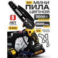 Купить Аккумуляторная мини пила HORDER 24В, 2500 мАч, шина 10/15 см, 2 АКБ, цепная, для дачи и сада с доставкой по всей России.