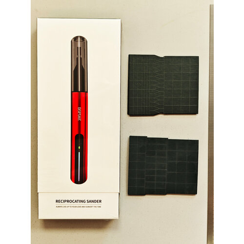 Аккумуляторная миниатюрная линейная шлифмашинка совершает возвратно-поступательные (туда-сюда) движения, вышкуривая труднодоступные места вашей модели.