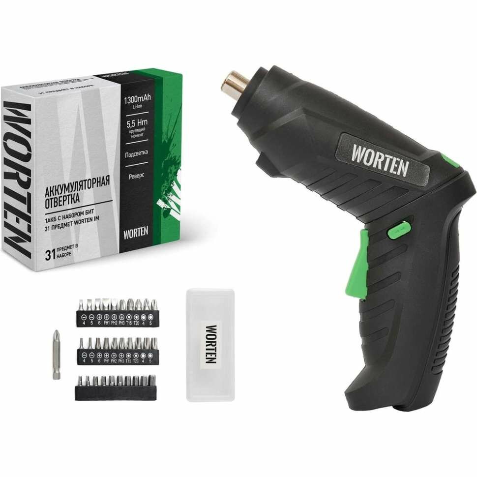 Аккумуляторная отвертка WORTEN 4В, 1АКБ, 1,3 Ач, с набором бит 31 предмет КА-90000327: сравнение цен, характеристики, фото, актуальное наличие и цены.