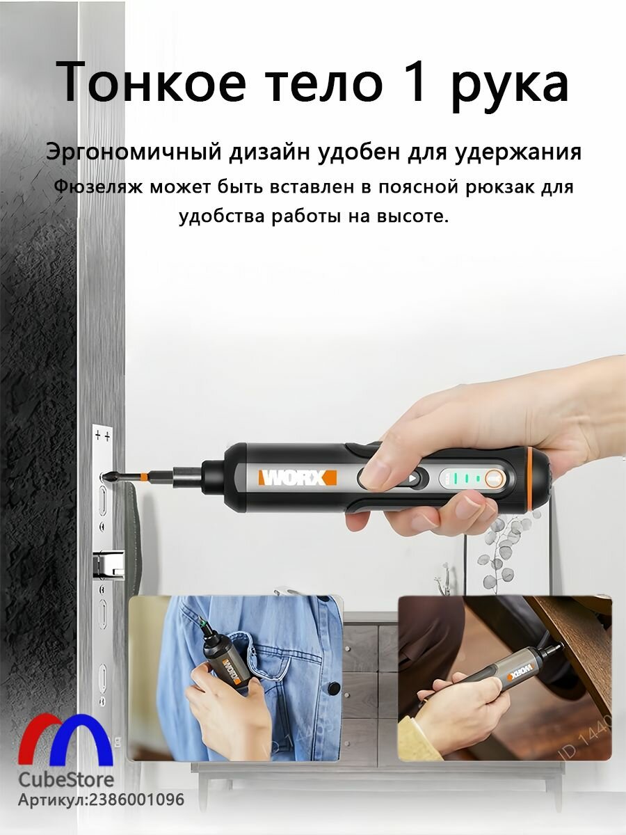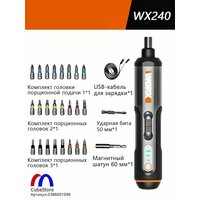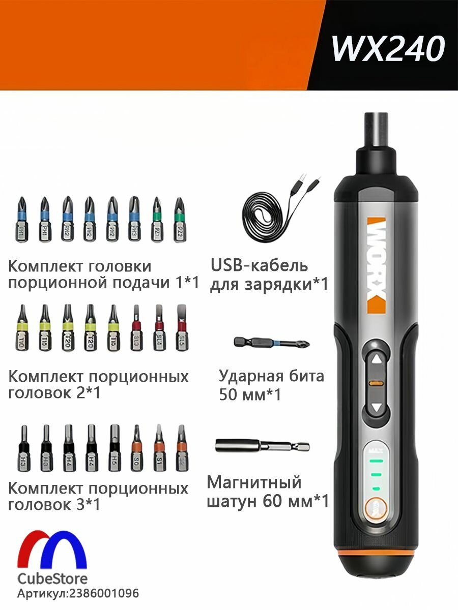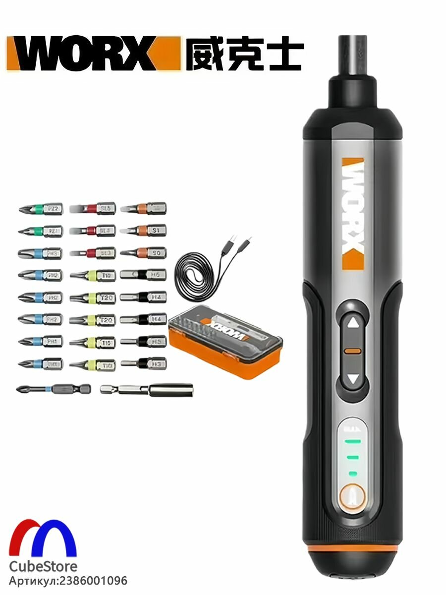 Аккумуляторная отвертка Worx WX240 4В, 5Нм, 1,5 Ач с набором оснастки