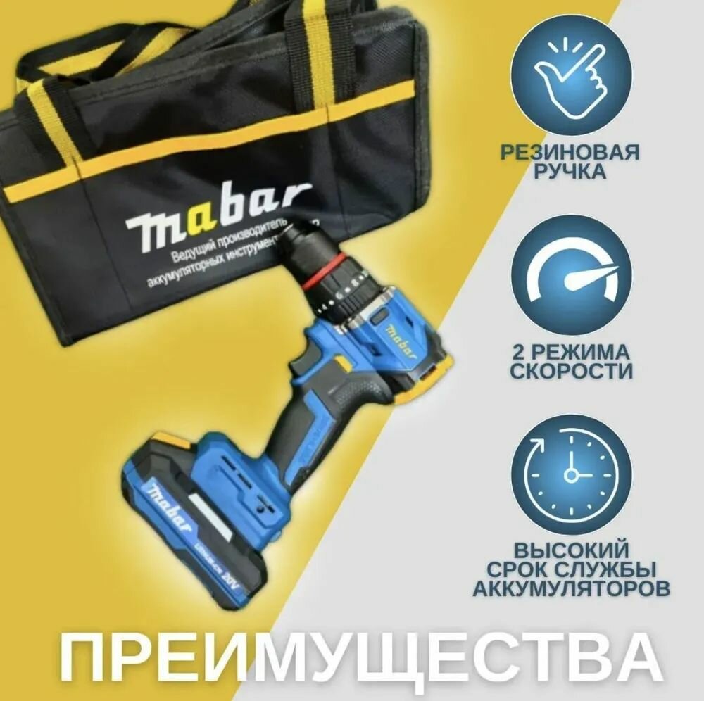 Купить Аккумуляторная профессиональная безщеточная ударная дрель шуруповерт Mabar 5502-2.0 20V, 2 АКБ, 2.0 Ah, 55 Нм с сумкой (новая версия под АКБ Makita) с доставкой по всей России. Аккумуляторная профессиональная безщеточная ударная дрель шуруповерт Mabar 5502-2.0 20V, 2 АКБ, 2.0 Ah, 55 Нм с сумкой (новая версия под АКБ Makita): сравнение цен, характеристики, фото, актуальное наличие и цены.