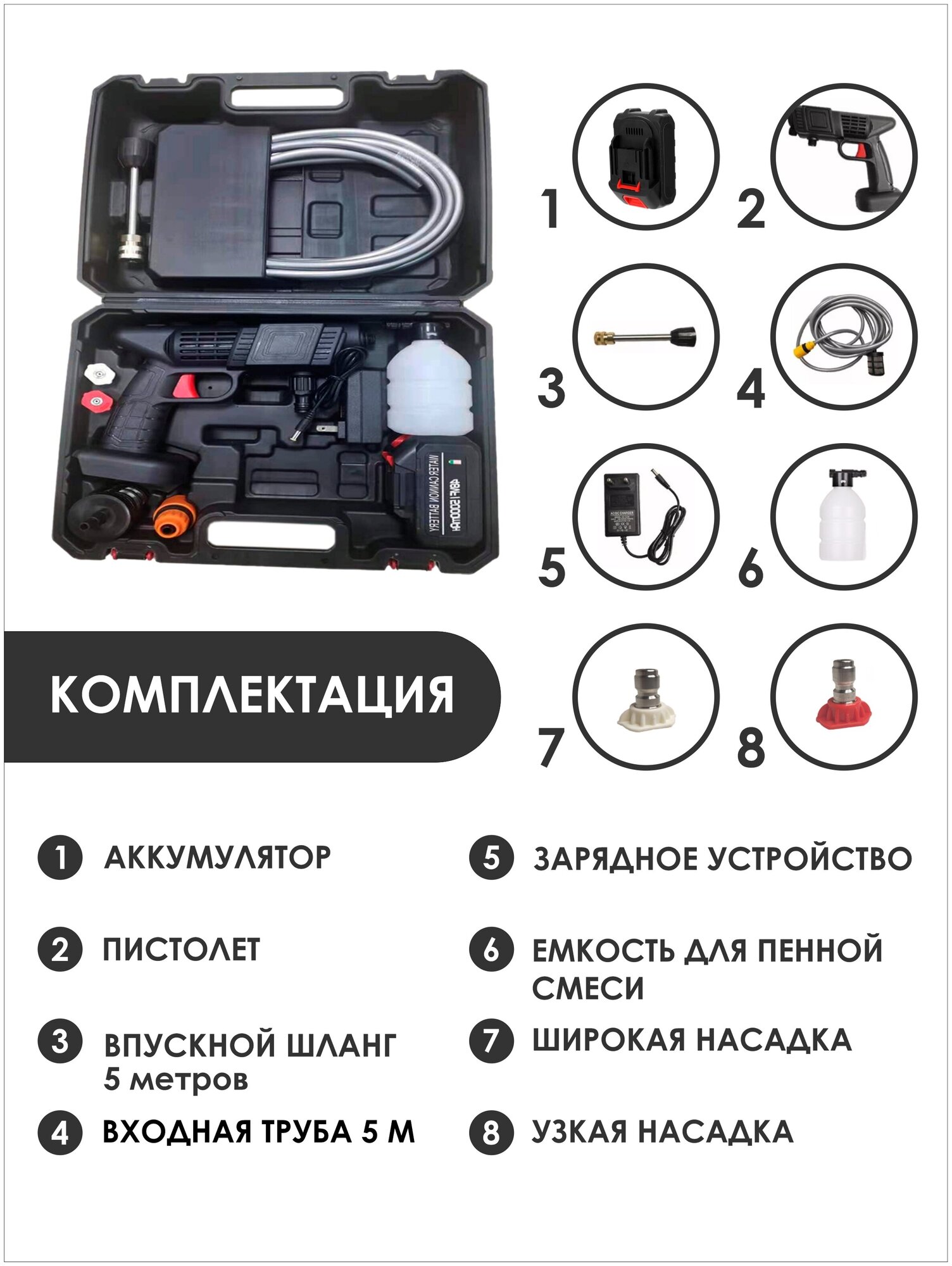 Купить Аккумуляторная ручная мойка высокого давления 48V с пеногенератором и фильтром для воды с доставкой по всей России.