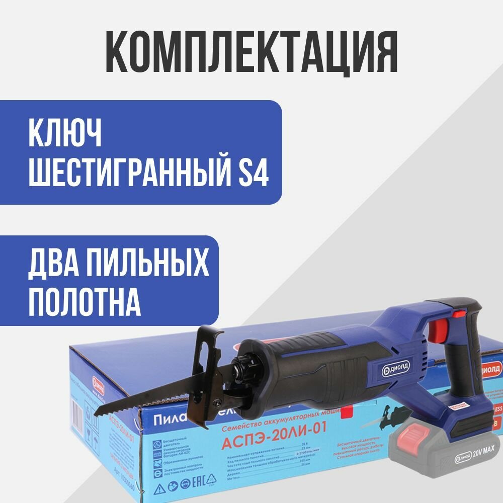 Купить Аккумуляторная сабельная пила Диолд АСПЭ-20ЛИ-01 без АКБ и ЗУ с доставкой по всей России. Аккумуляторная сабельная пила Диолд АСПЭ-20ЛИ-01 без АКБ и ЗУ: сравнение цен, характеристики, фото, актуальное наличие и цены.