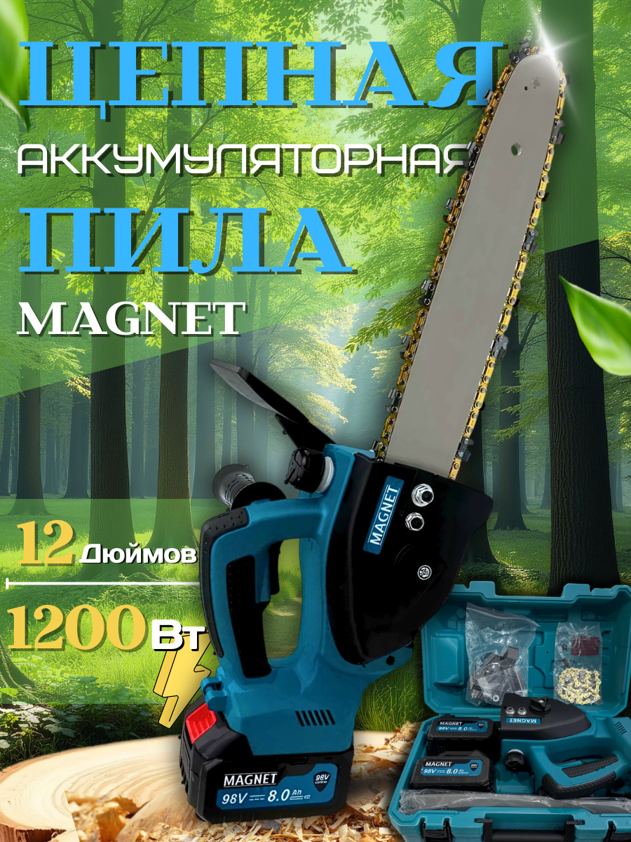 Купить Аккумуляторная садовая пила цепная, электропила 12 дюймов 98V Magnet с доставкой по всей России. Аккумуляторная садовая пила цепная, электропила 12 дюймов 98V Magnet: сравнение цен, характеристики, фото, актуальное наличие и цены.