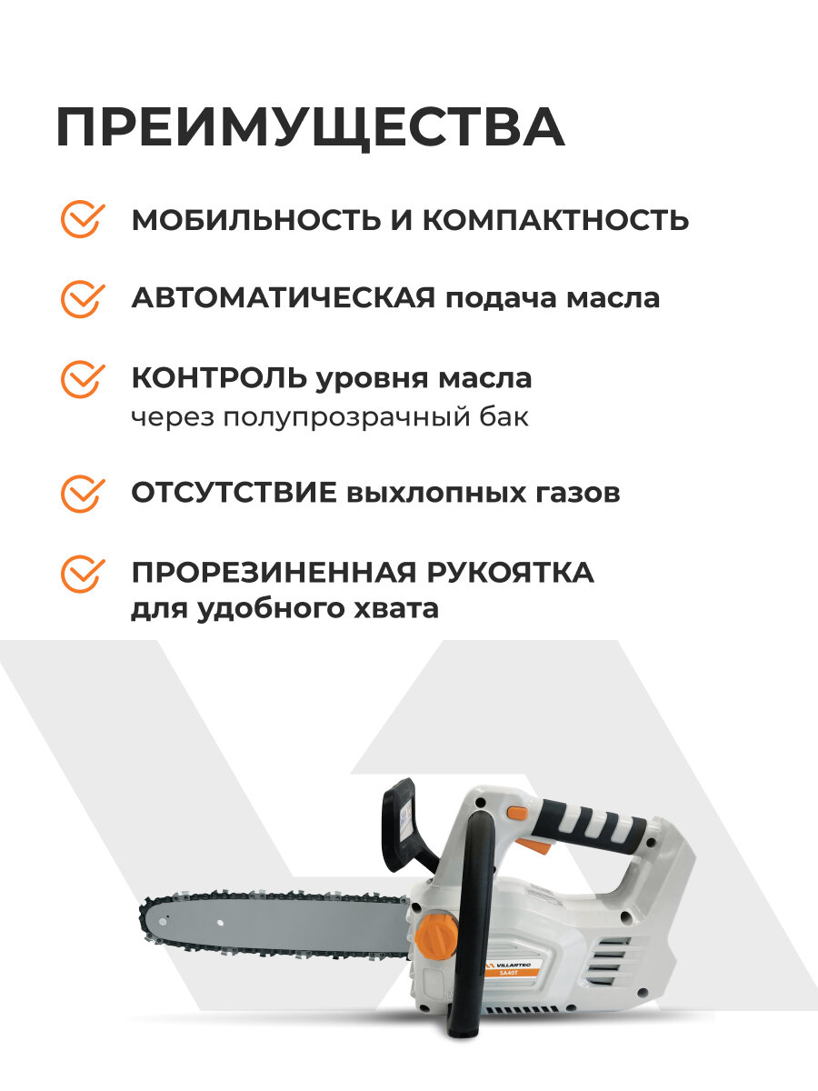 Аккумуляторная цепная пила VILLARTEC SA20Set (+ аккумулятор 2 А/ч + зарядное устройство)