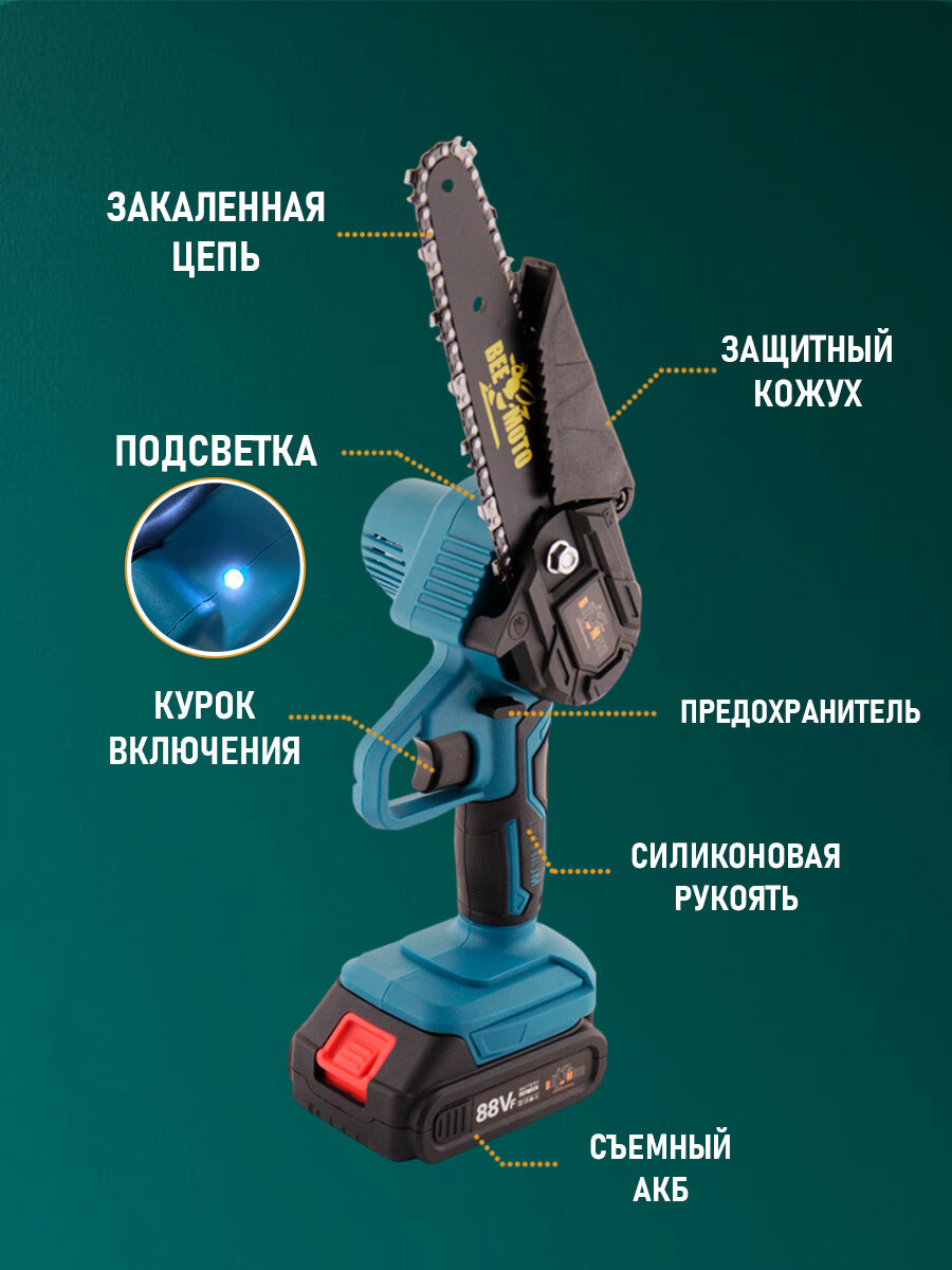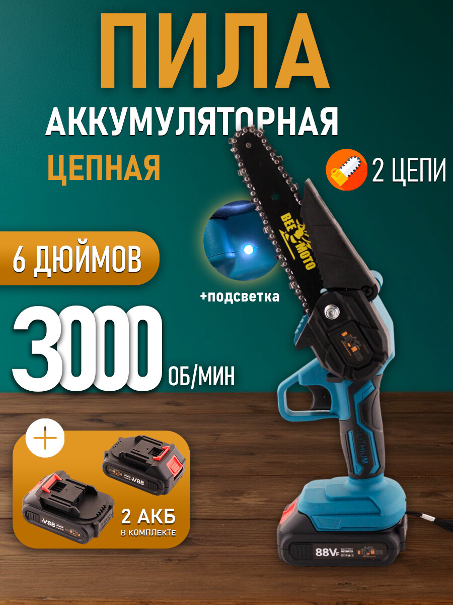 Аккумуляторная цепная пила 88Vf (6 дюймов, 1.5Ah, 2 акб(Li-ion), цепь 2шт, подсветка): сравнение цен, характеристики, фото, актуальное наличие и цены.