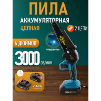 Аккумуляторная цепная пила 88Vf (6 дюймов, 1.5Ah, 2 акб(Li-ion), цепь 2шт, подсветка)