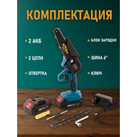 пила, 2 акб, отвертка, зарядное устройство, цепь 2 -шт, шина