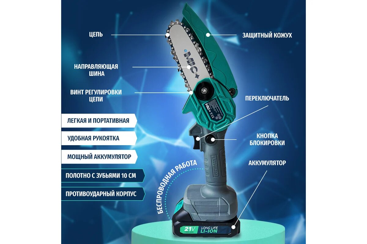 Аккумуляторная цепная пила MLC шина 10 см, 21В, АКБ Li-ion 1.3 А*ч YH-DZ-101: сравнение цен, характеристики, фото, актуальное наличие и цены.