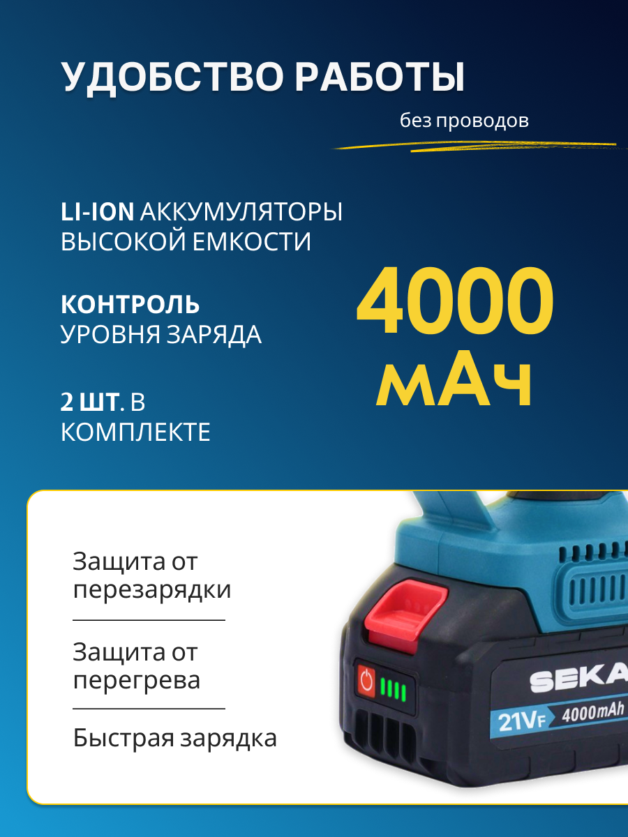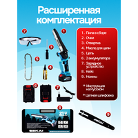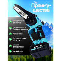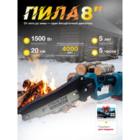 Оснащенная высокоэффективным двигателем, наша пила легко справится с самыми сложными задачами. Прочная цепь длиной 8 дюймов обеспечивает точный и чистый рез. В комплекте идут два емких аккумулятора , что позволяет работать без остановок на подзарядку в течение длительного времени. Для удобства хранения и транспортировки инструмент поставляется в надежном пластиковом кейсе.