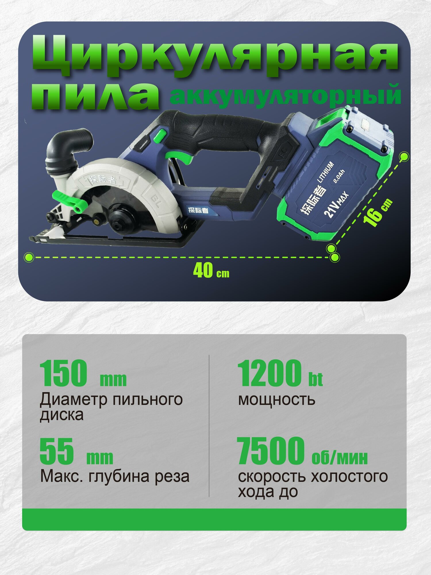 Купить Аккумуляторная циркулярная пила 2*8.0ah 21V, 150mm,1200W, Tanjizhe с доставкой по всей России. Аккумуляторная циркулярная пила 2*8.0ah 21V, 150mm,1200W, Tanjizhe: сравнение цен, характеристики, фото, актуальное наличие и цены.