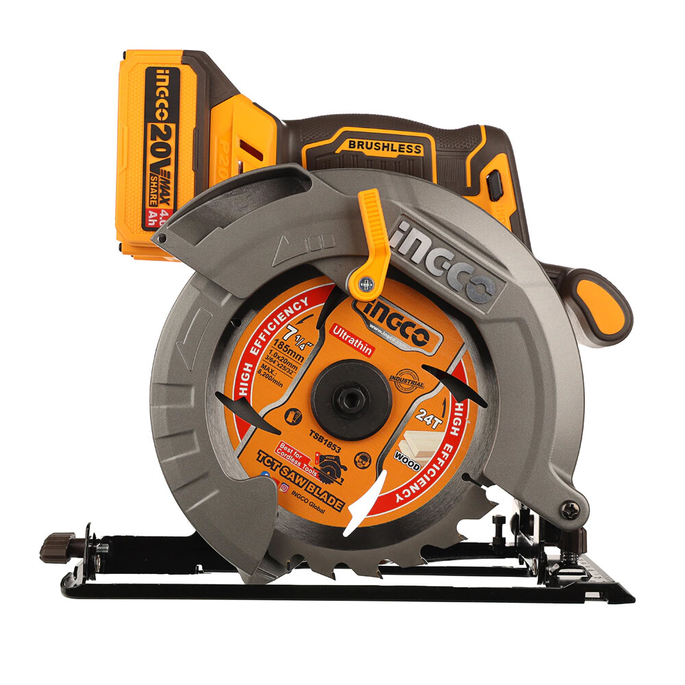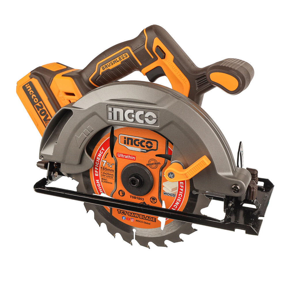 Аккумуляторная циркулярная пила BL 20В 185мм. 1хАКБ 4Ач и ЗУ SUPER INGCO CSLI18511 INDUSTRIAL предназначена для распиловки разнообразных материалов. Угол наклона дисковой пилы можно регулировать от 0 до 45 градусов. Ровность реза достигается за счет параллельного упора, идущего в комплекте.
