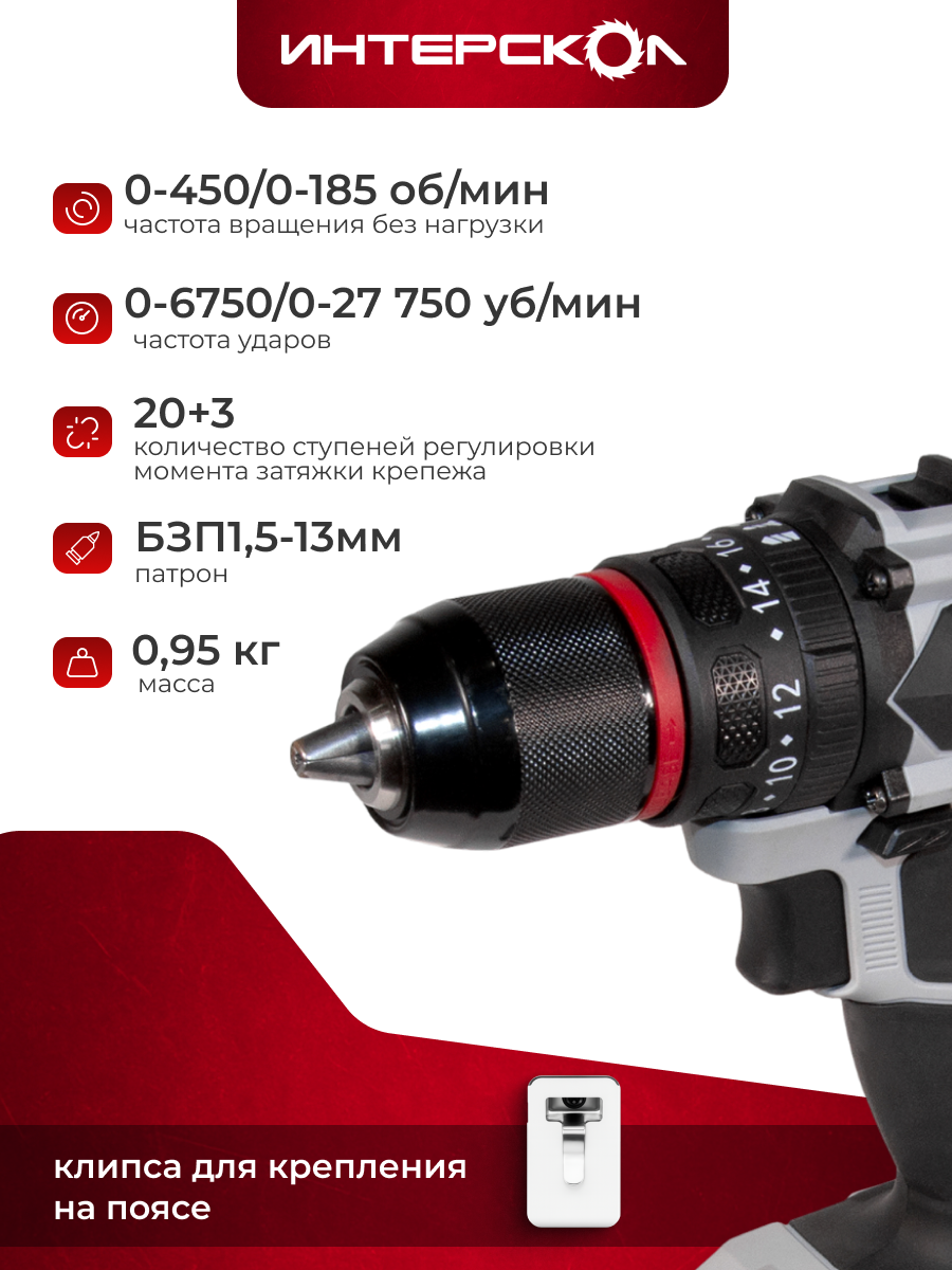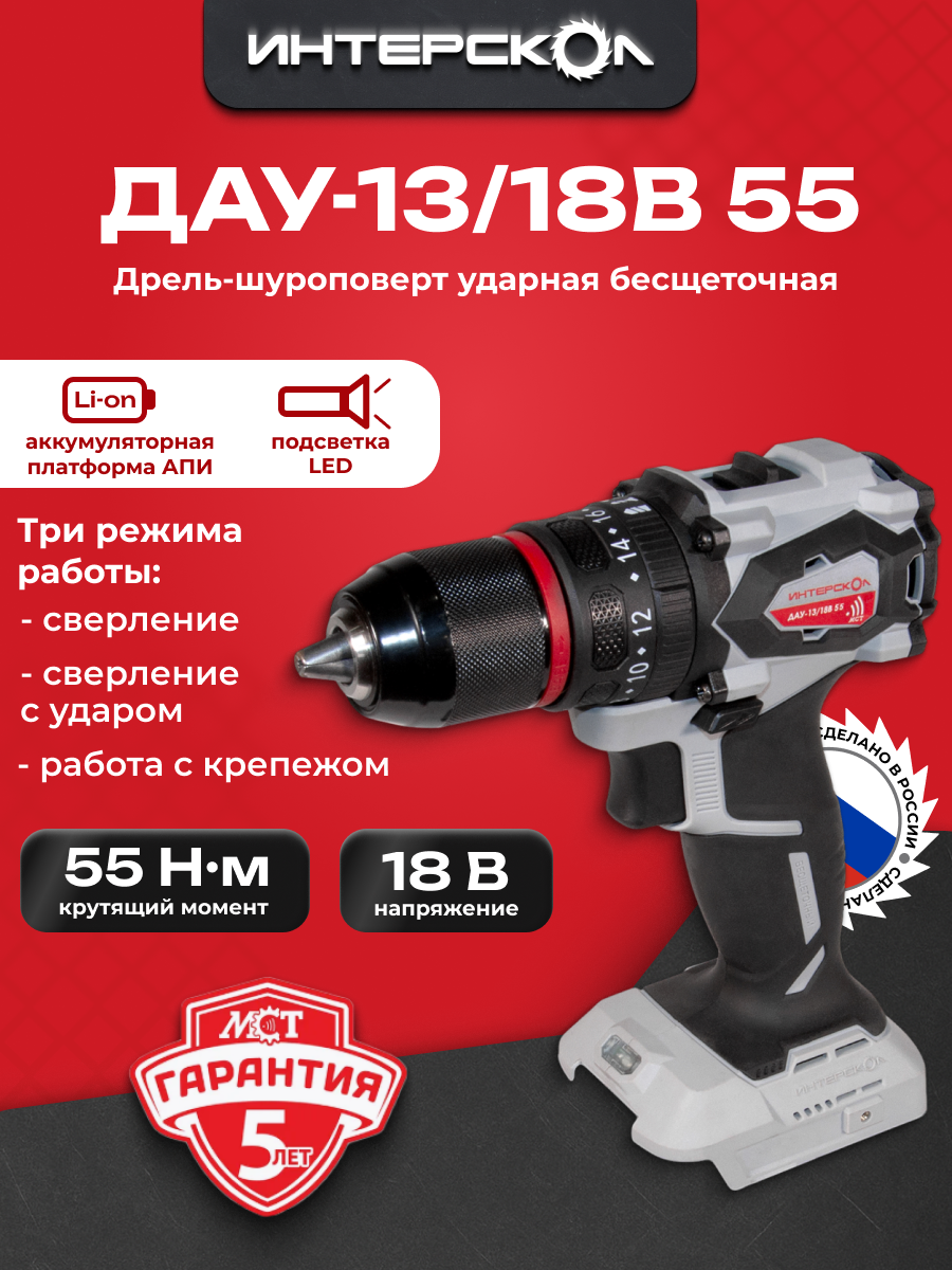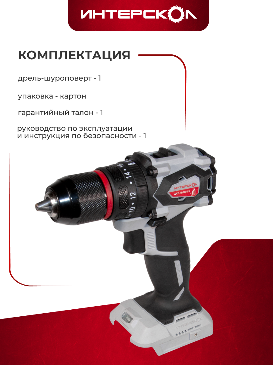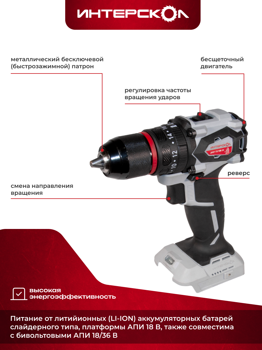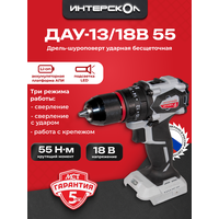 Аккумуляторная ударная бесщеточная дрель-шуруповерт ИНТЕРСКОЛ ДАУ-13/18В АПИ, Li-ion, без АКБ. и ЗУ, 953.0.0.70: сравнение цен, характеристики, фото, актуальное наличие и цены.
