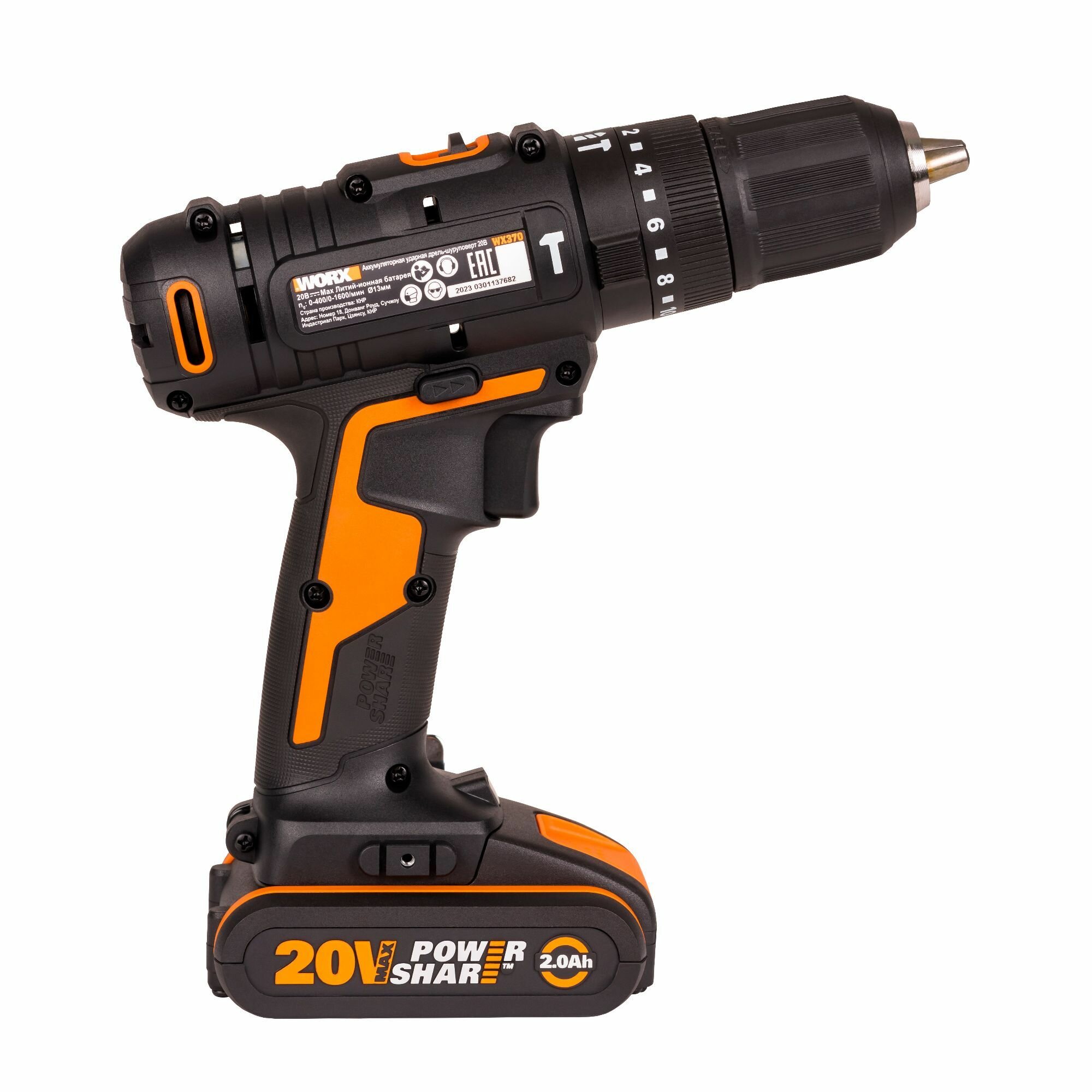 Аккумуляторная ударная дрель-шуруповерт с набором оснастки Worx WX370, 20 В, 50 Нм, 2 АКБ по 2Ач + ЗУ 2А, кейс: сравнение цен, характеристики, фото, актуальное наличие и цены.