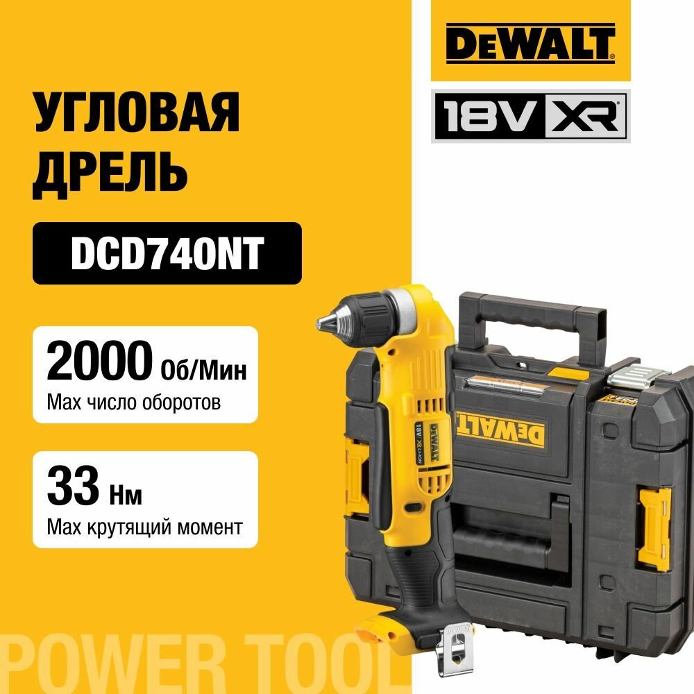 Аккумуляторная угловая дрель DEWALT DCD740NT, 18 В, 2000 об/мин, без АКБ и ЗУ, в кейсе TSTAK: сравнение цен, характеристики, фото, актуальное наличие и цены.